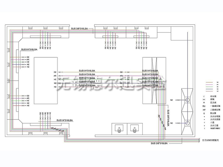 在現(xiàn)代化的實(shí)驗(yàn)室中,為了完成實(shí)驗(yàn),需要用到多種分析儀器,如氣相色譜儀,原子吸收,氣—質(zhì)聯(lián)用儀,ICP等等,其中這些儀器需要用到高純氣體,傳統(tǒng)的做法是采用獨(dú)立鋼瓶分散供氣的模式,這種供氣模式每臺(tái)儀器設(shè)備單獨(dú)配置氣體鋼瓶,分別滿足每臺(tái)儀器設(shè)備的使用,但隨著近年來(lái)實(shí)驗(yàn)室投資的不斷加大,儀器設(shè)備的迅速增加,用氣量也逐年增加,傳統(tǒng)的供氣模式已經(jīng)難以滿足儀器設(shè)備增加的需求,同時(shí)分散供氣模式帶來(lái)的實(shí)驗(yàn)室布局混亂,鋼瓶的頻繁替換也對(duì)實(shí)驗(yàn)室的管理和維護(hù)造成了困難,為了解決以上兩個(gè)方面的問(wèn)題,就需要一套安全性高且能實(shí)現(xiàn)集中分配供氣的系統(tǒng)完成從氣源向儀器的供氣,這就是實(shí)驗(yàn)室高純氣體管道系統(tǒng)的功能所在。